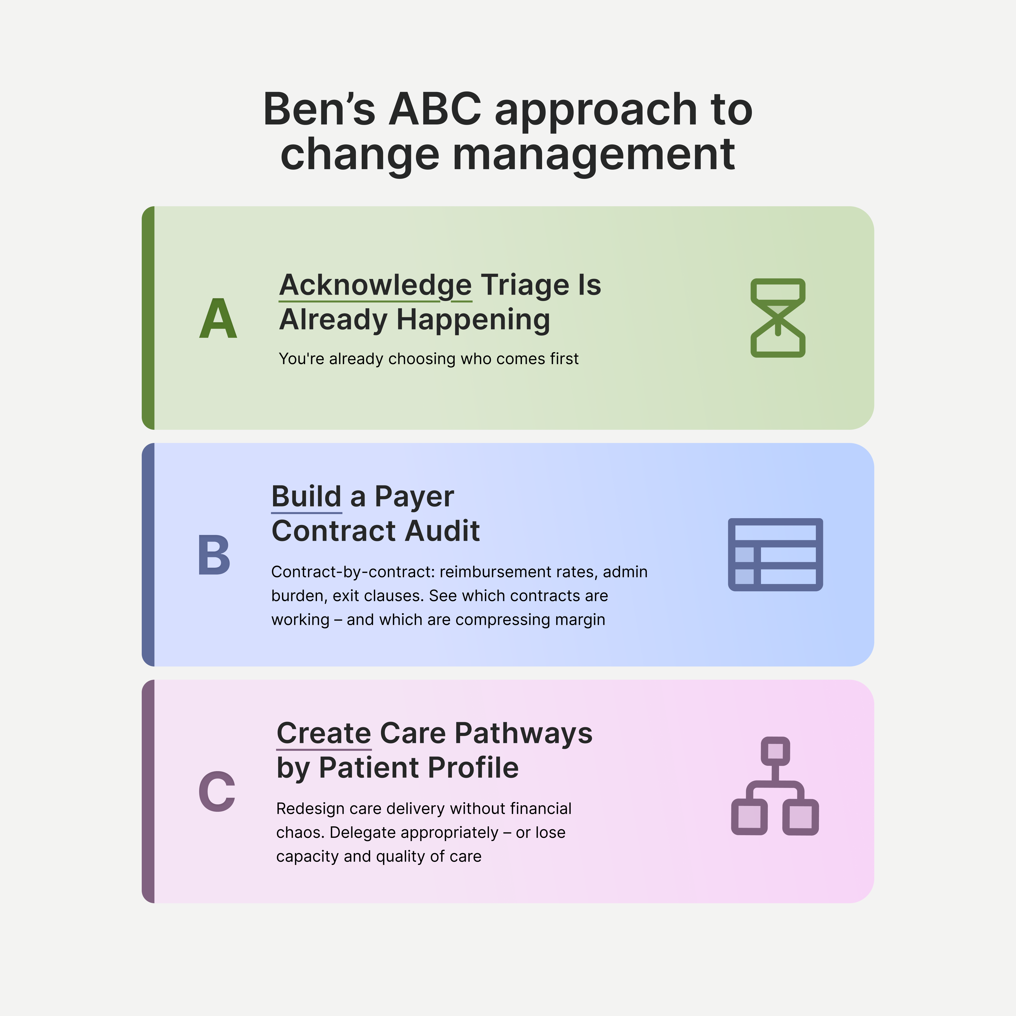 Now, practices can begin redesigning care delivery without financial chaos. Different patient profiles need different care pathways.